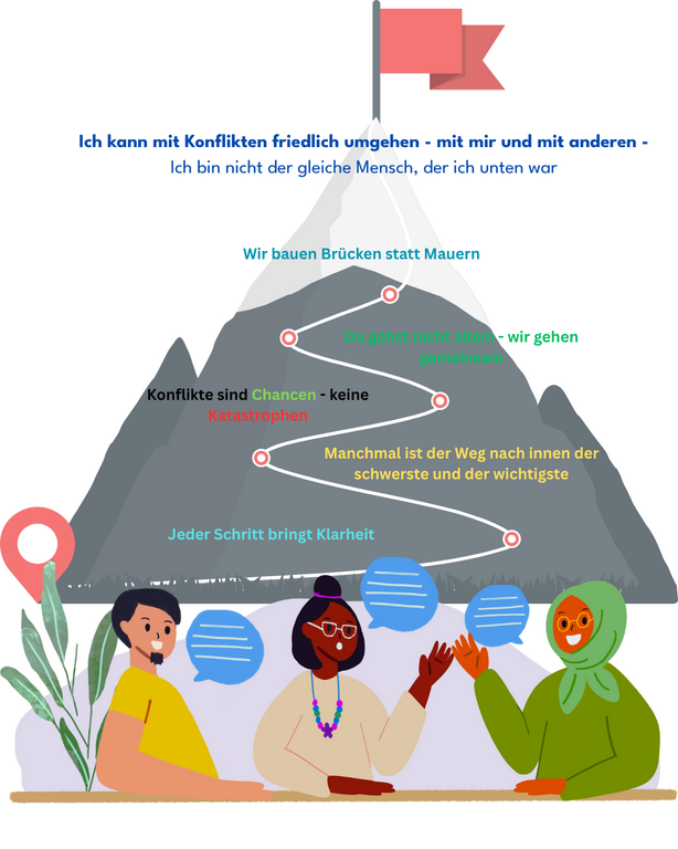 Wie gehen wir mit Konflikten um? Zweisprachiger Praxis-Workshop, übersetzt durch eine Dolmetscherin.
